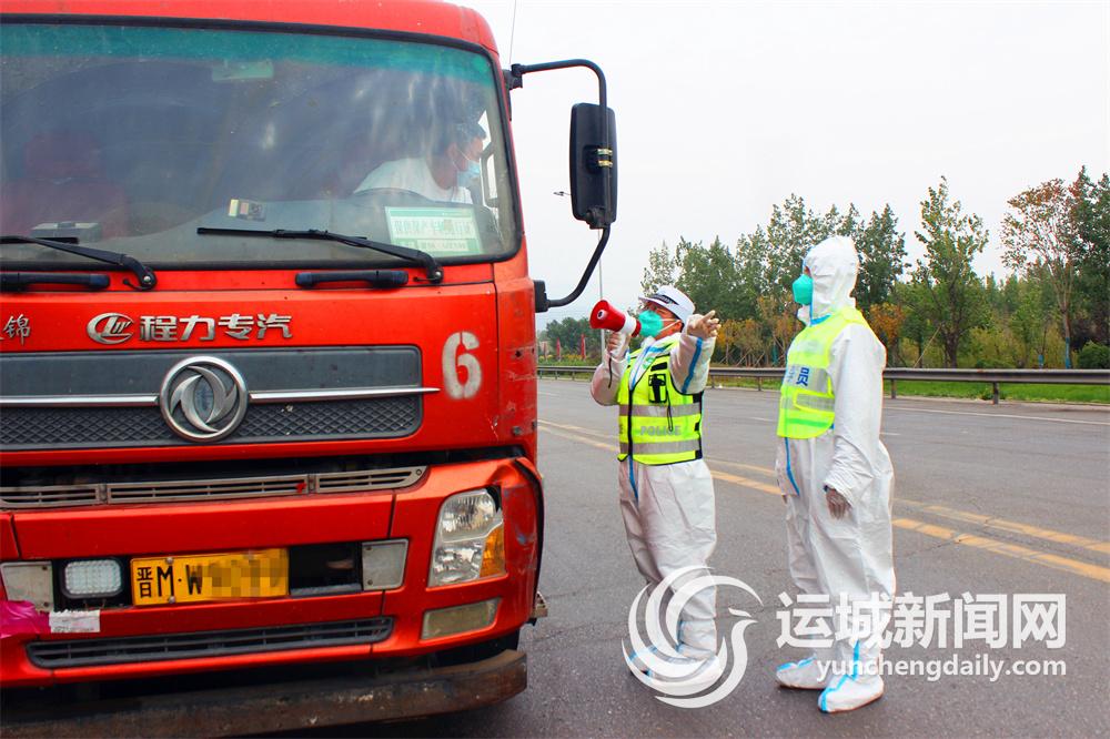 10月25日,稷山县公安局交通管理大队执勤民警在侯禹高速稷山出口处疫情检查点,配合疾控人员对过往车辆开展安全检查,对重点车辆进行安全管控。