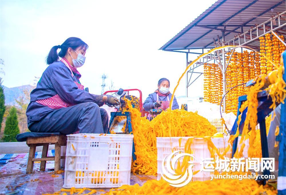 10月26日,夏县展鹏农业开发有限公司员工在削柿子。