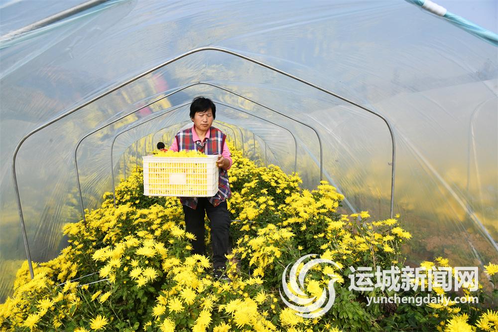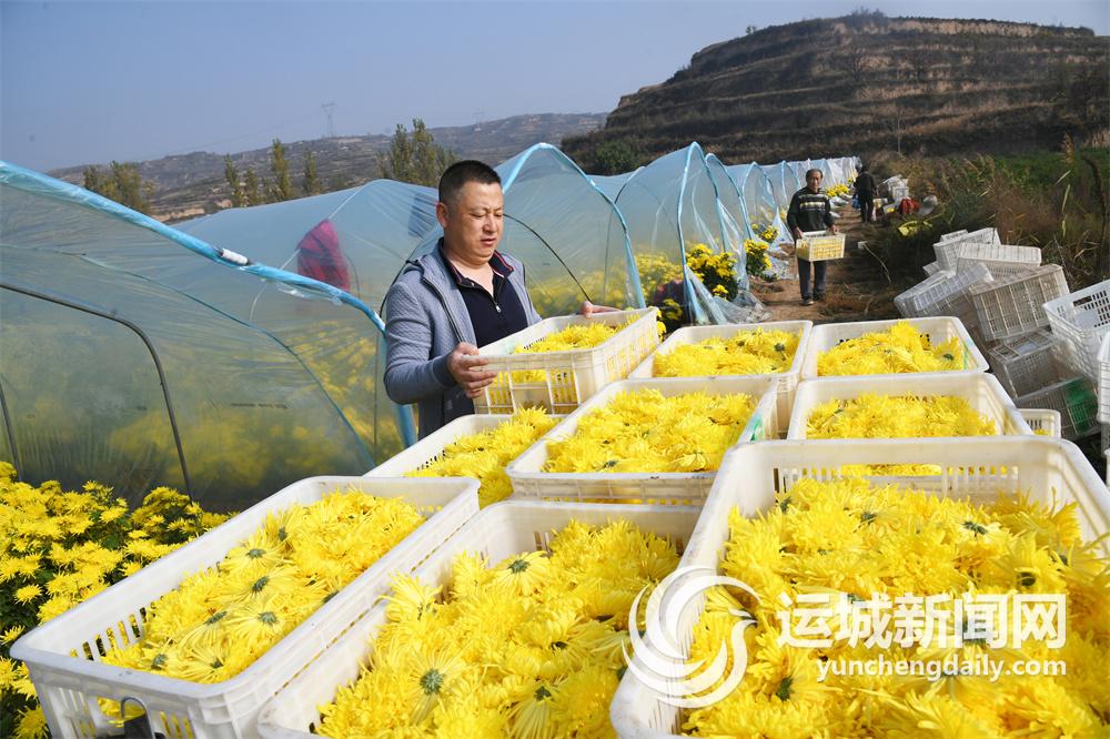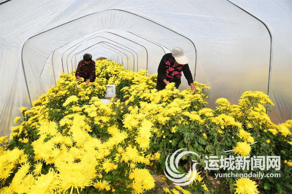11月2日,在闻喜县桐城镇上白土村,山西新桐农业有限公司的员工在采摘菊花。