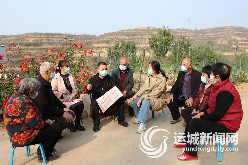11月3日,在地处山区的闻喜县后宫乡谷清村,后宫乡党委党的二十大精神宣讲团成员在向群众宣讲党的二十大精神。