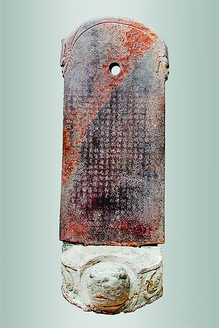▲北魏密云太守霍扬碑,临猗县博物馆收藏,原竖立于临猗县临晋镇霍村霍扬墓地。高192厘米、宽96厘米,厚20厘米。红砂石质,首身一体。首部半圆形,碑额线刻释迦牟尼结跏趺坐像,佛像左右分两行篆书“密云太守霍扬之碑”8字。首身之间有圆穿。文17,行27字,字径4厘米,魏体楷书。刻于北魏景明五年,书法方正典雅、雄劲无敌,神采焕发、古色照人,为本省存世魏碑之冠。1979年被公布为全国第一批书法艺术名碑。运城市文物保护中心供图