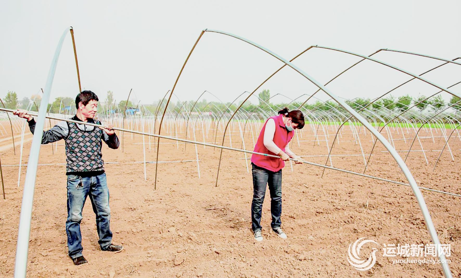 近日,夏县农民及早动手搭建钢架西瓜大棚,为明年早春瓜苗进棚做好准备。