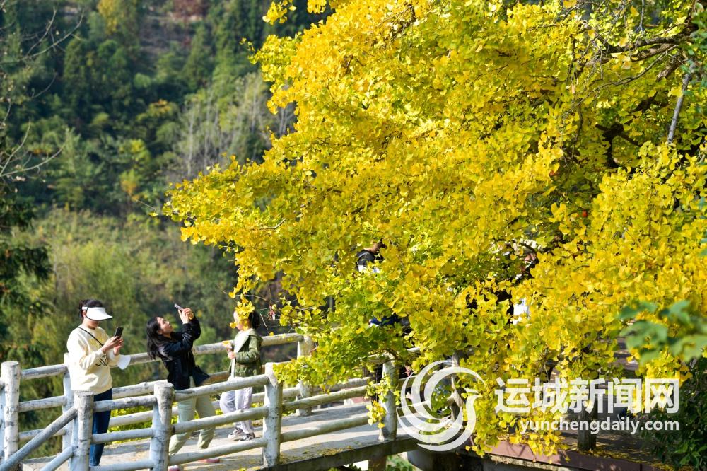 11月6日,游客在贵阳市乌当区羊昌镇黄连村的古银杏树下拍照。