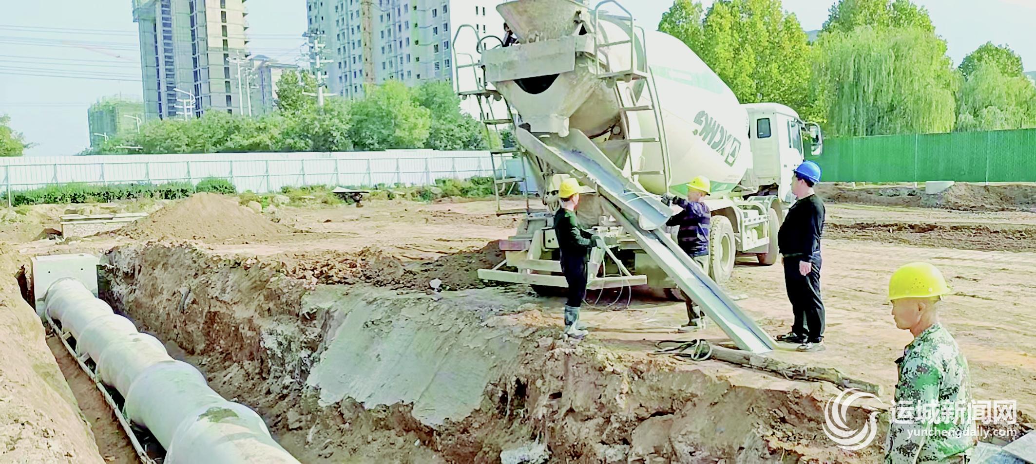 运城晚报讯(记者 祁克宁)11月6日,在永济市体育中心周边城市道路建设工程施工现场,施工人员正在铺设雨水、污水管网作业,大型机械车辆在加紧作业。