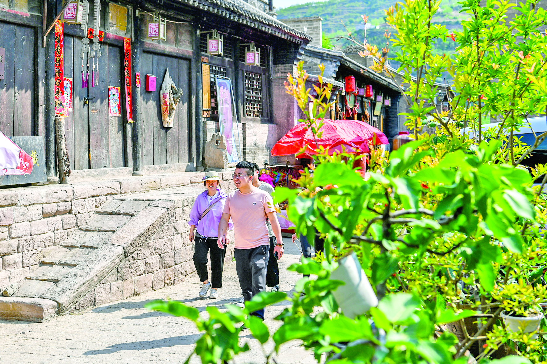 ▲游客在被誉为“九曲黄河第一镇”的山西省吕梁市临县碛口古镇游玩(2022年5月25日摄)。