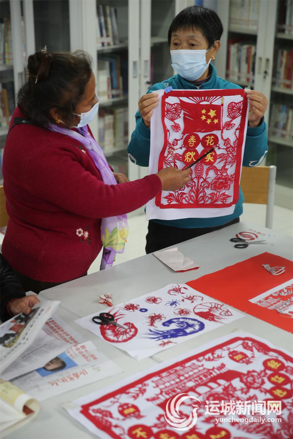 “今天教给大家的剪纸内容,主要是党徽、瓜菜、五角星……”11月11日下午,永济市虞乡镇文化站,该镇洗马村的非遗剪纸传承人李芳芳,向来自全镇各村的剪纸爱好者讲解剪纸艺术,分享她的以“不忘初心,奋进征程”“春华秋实”“瓜乡福娃”为主要内容的优秀手工剪纸作品创作过程。