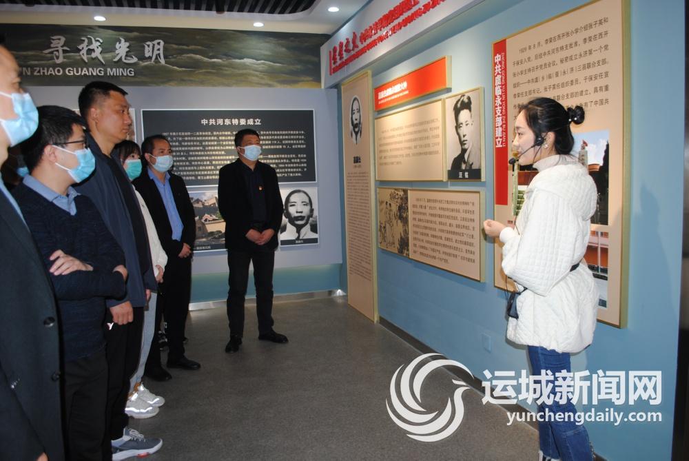 永济市文物保护中心干部职工在中共虞临永支部旧址听有关讲解。