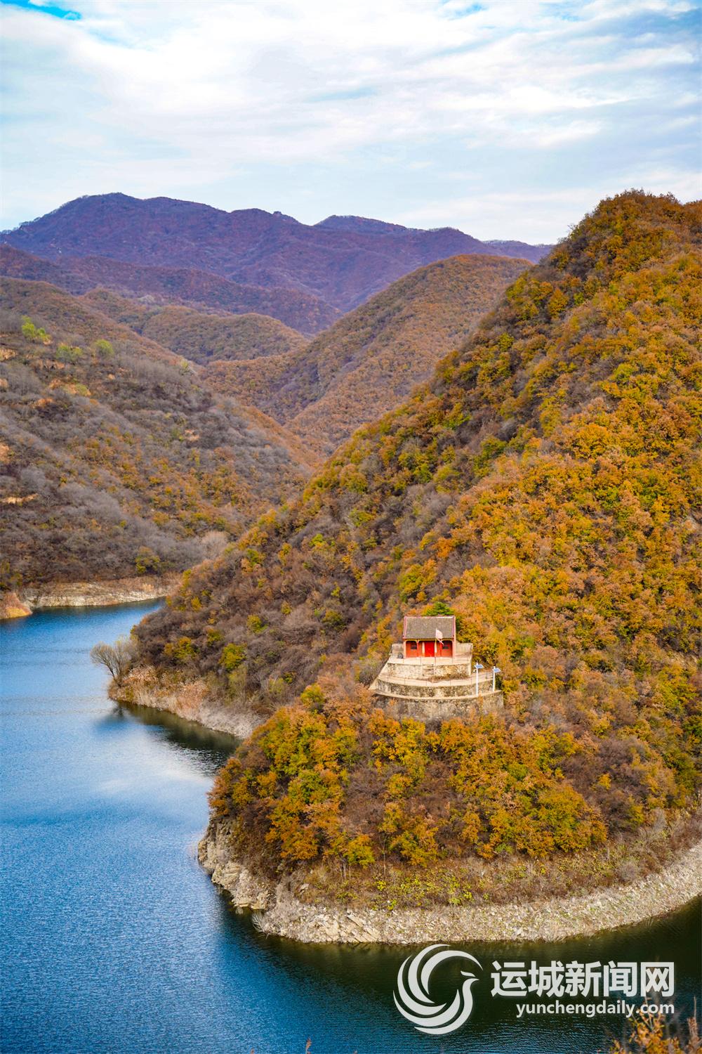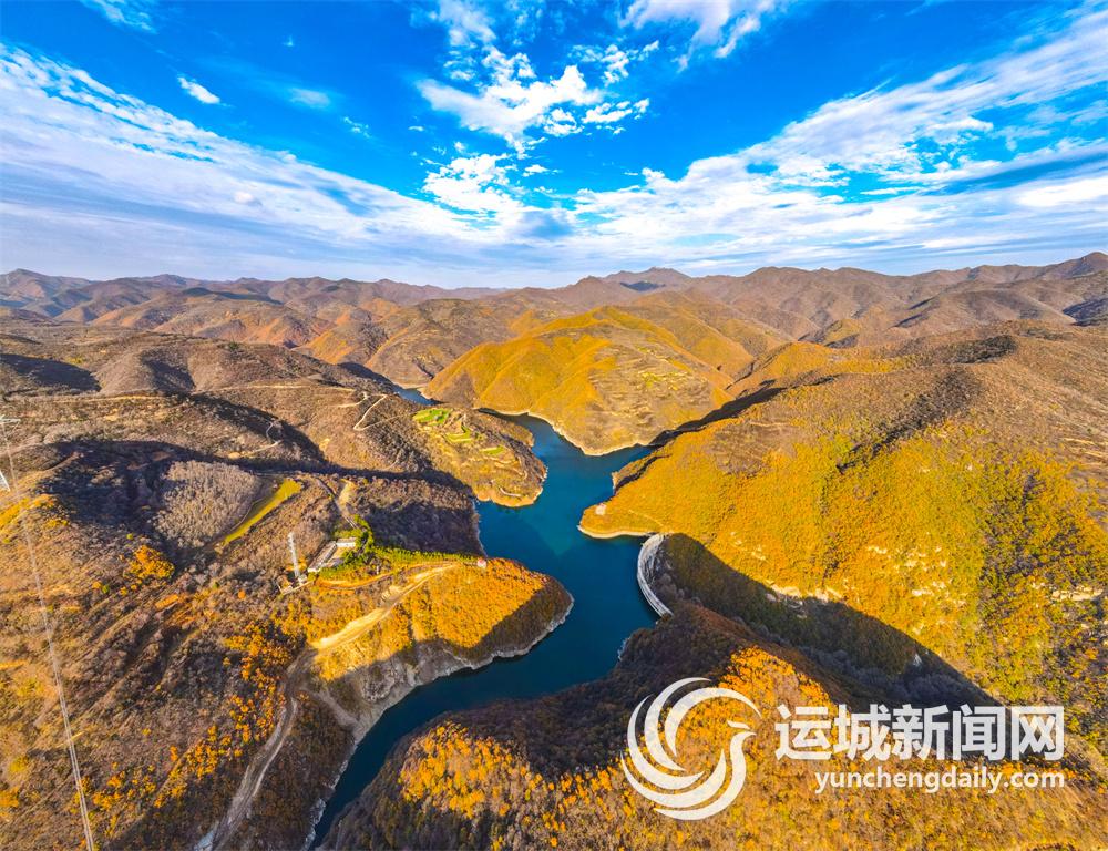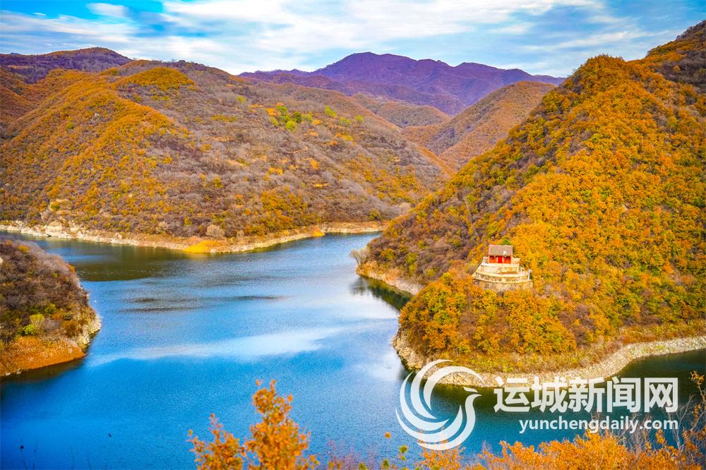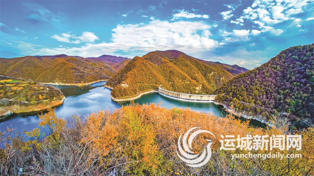 11月12日,平陆县大河庙一带群山层林尽染,在蓝天白云映衬下展现出如梦如画般的景象。 记者 陈方斌 摄