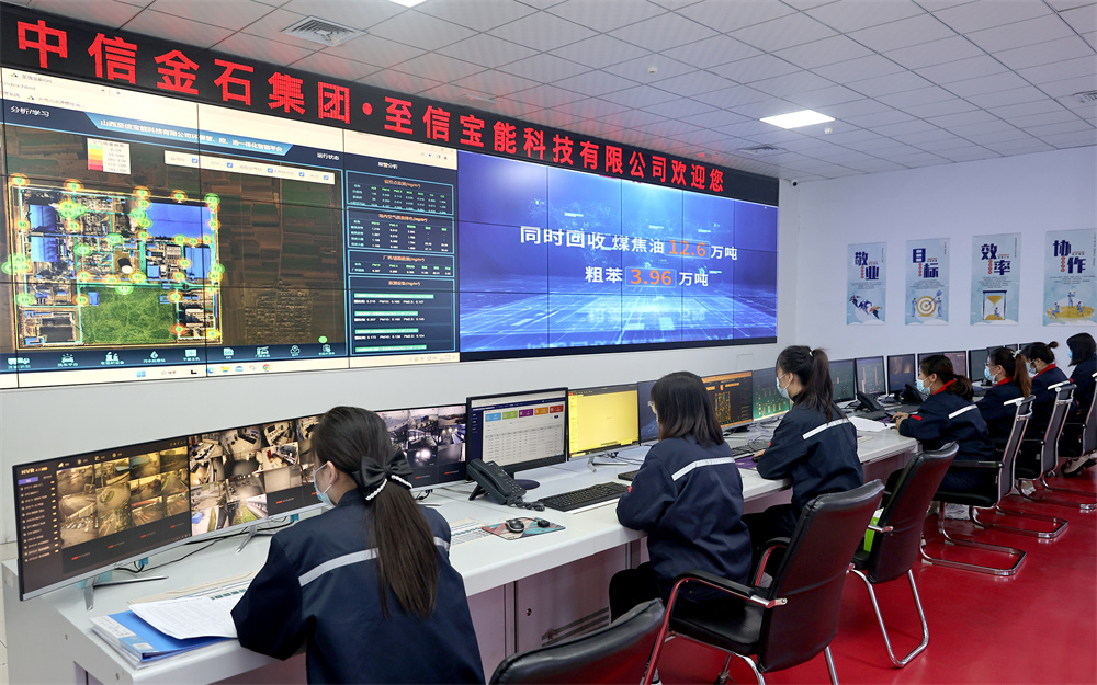 11月14日,山西至信宝能科技有限公司总控室技术员在监控各种自动化生产数据。
