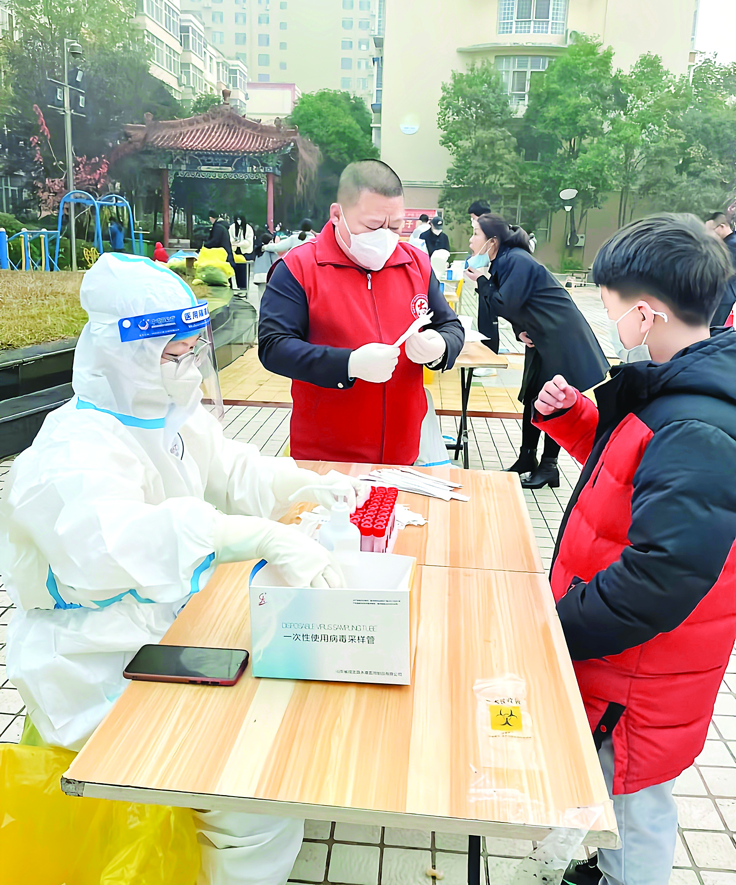 助力全员核酸检测、分发保供蔬菜、维持秩序、劝导居民回家……怡景华庭小区的39名志愿者分为5个疫情防控工作组,各司其职,守护着小区居民的健康与平安,赢得了大家的一致好评。