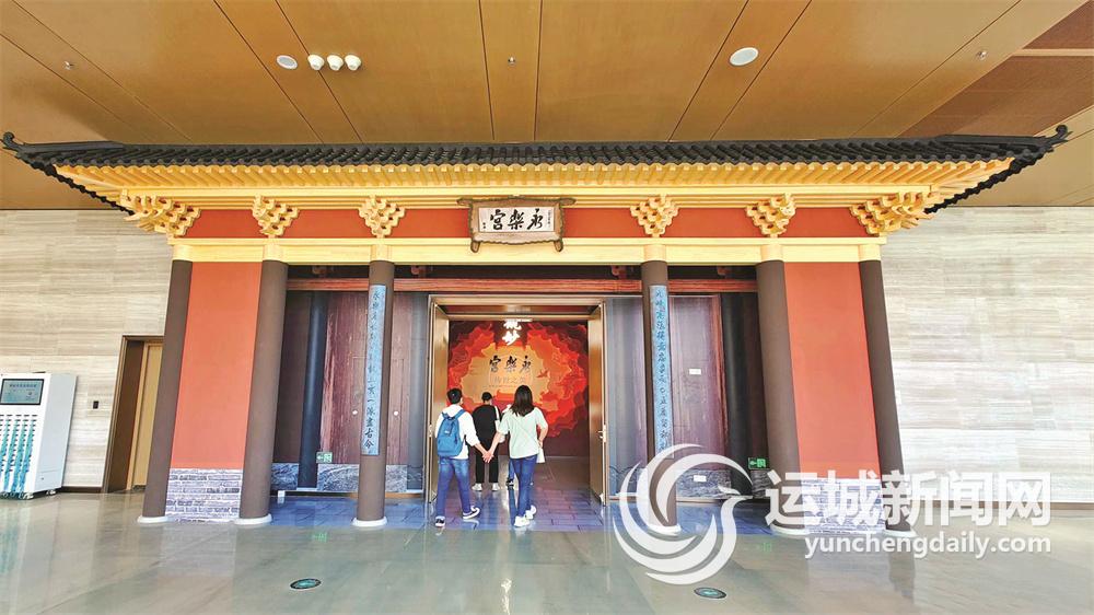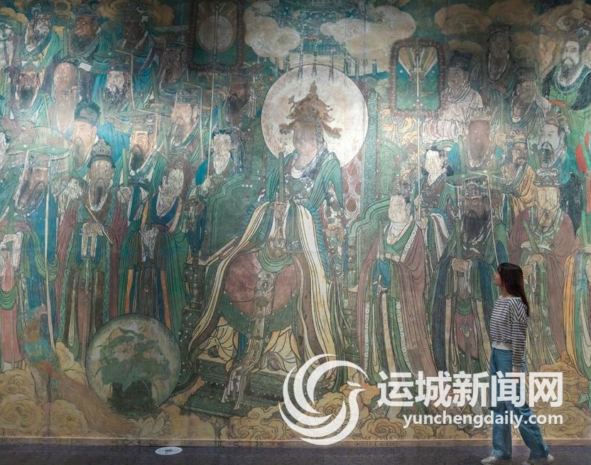 “西来一曲昆仑水,划断中条太华山”。黄河在风陵渡掉头向东,从芮城永乐宫身旁,浩浩荡荡一路向东,在山东聊城与大运河相遇,这是地理因素上永乐宫得以在中运博展览的契机。从文化角度来看,永乐宫作为黄河文化的杰出代表,保留有丰厚珍贵的文化遗产,与大运河文化同属于重要河流文化。后经过专家、学者多方研讨,中运博邀请永乐宫作该馆“文化遗产”系列展览的首展,全面展示永乐宫传世精品171件(组),涵盖了永乐宫的建筑、壁画、雕塑等珍贵艺术,凝炼迁建过程中展现出的文物保护精神,多维度加强观众对永乐宫的认知,以此完成黄河文化与大运河文化一次珍贵的交融。