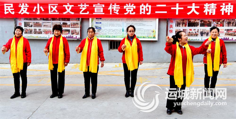 该小区创作编排了垣曲镲《举国欢庆二十大》、群口快板《二十大精神暖人心》、独唱《守的是人心》等节目,以居民喜闻乐见的形式宣传党的二十大精神,受到小区居民欢迎。