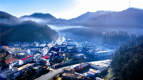 11月17日,卢氏县狮子坪乡秀丽的小镇与流动的晨雾构成一幅天然的山水画卷,美不胜收。