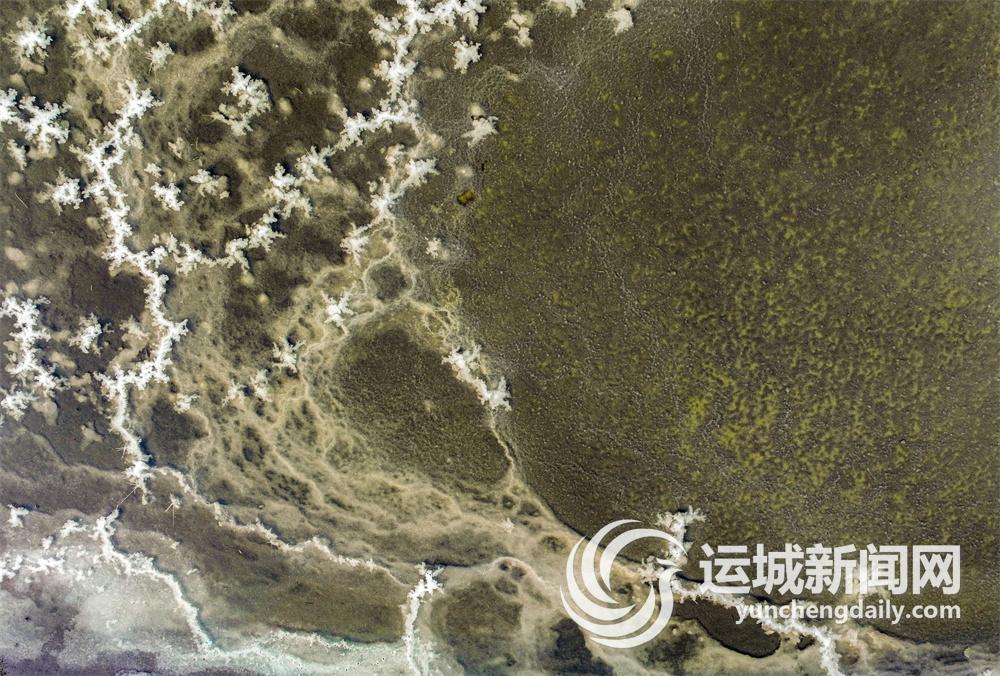 11月19日,随着温度逐渐降低,盐湖绽放出美丽的“硝花”。