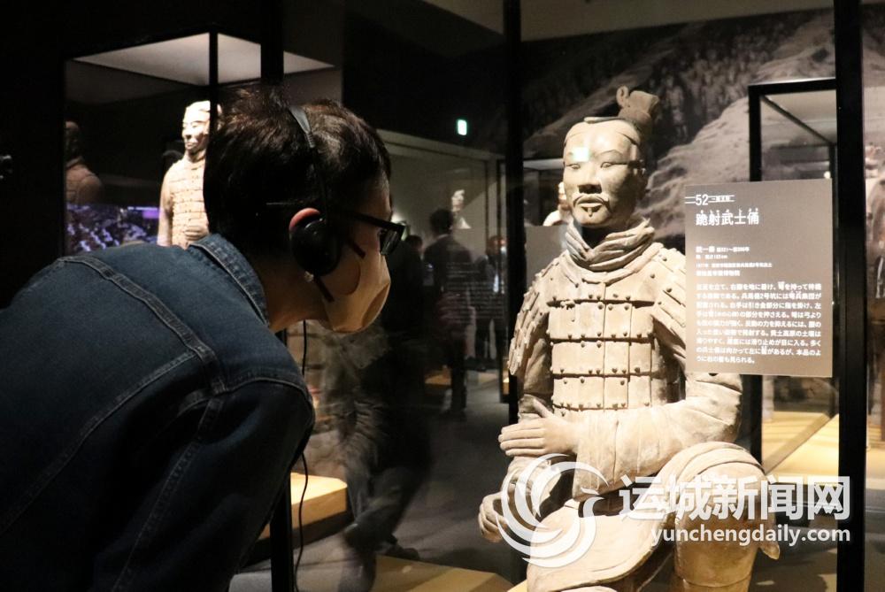 11月21日,一名参观者在日本东京上野之森美术馆《兵马俑与古代中国——秦汉文明的遗产》大型文物展媒体预展上欣赏跪射武士俑。 作为纪念中日邦交正常化50周年的重要文化交流活动,《兵马俑与古代中国——秦汉文明的遗产》大型文物展继在京都、静冈、名古屋等地展出后,迎来日本巡回展最后一站——东京上野之森美术馆展。新华社记者 杨光 摄