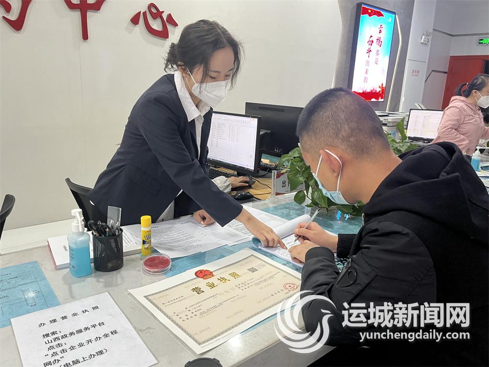 在市区红旗东街中国邮政储蓄银行运城市分行商事登记帮办代办网点,工作人员雷如意表示,他们同行政审批部门签署了《全程电子化登记“政银合作”协议》,不仅设置了帮办代办点,还配置了执照领取自助终端,申办企业规模不受限制,并为经营者提供银行开户、贷款、结算等一揽子金融服务,帮助企业开起来、开下去。