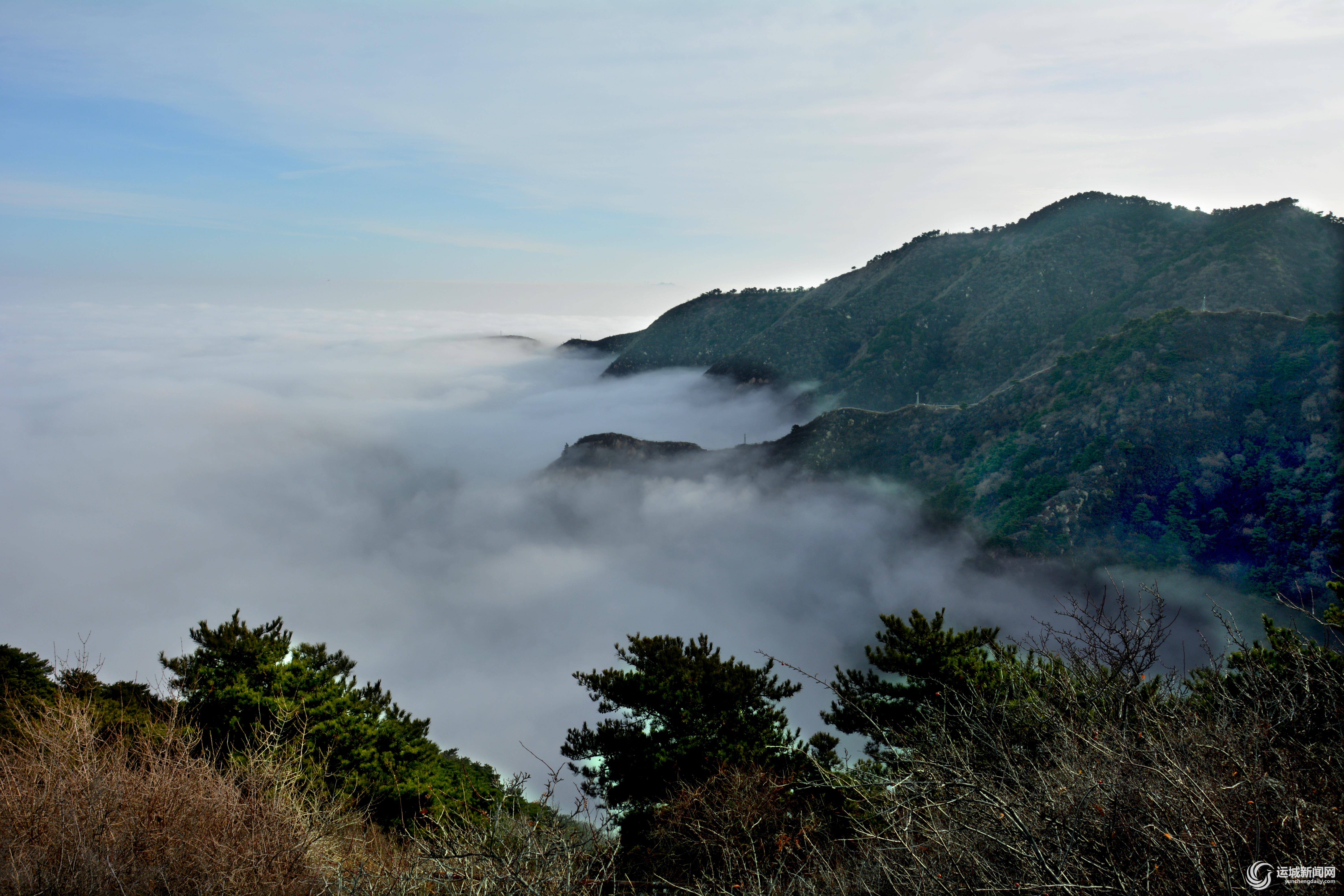 ▲11月23日,万荣县孤峰山雨后出现了迷人的云海美景。洁白的云雾层层叠叠,萦绕山间,如诗如画。 张怀心 王春喜