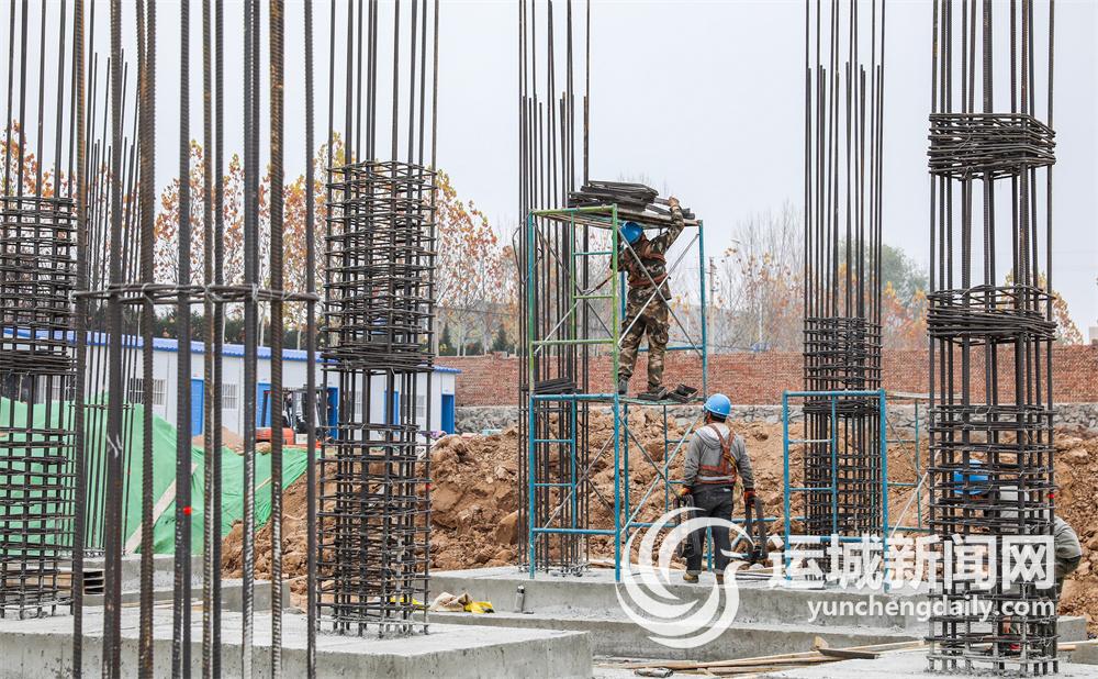 11月22日,在太锅集团低碳洁能热力绛县有限公司项目工地上,工人们正加紧建设。