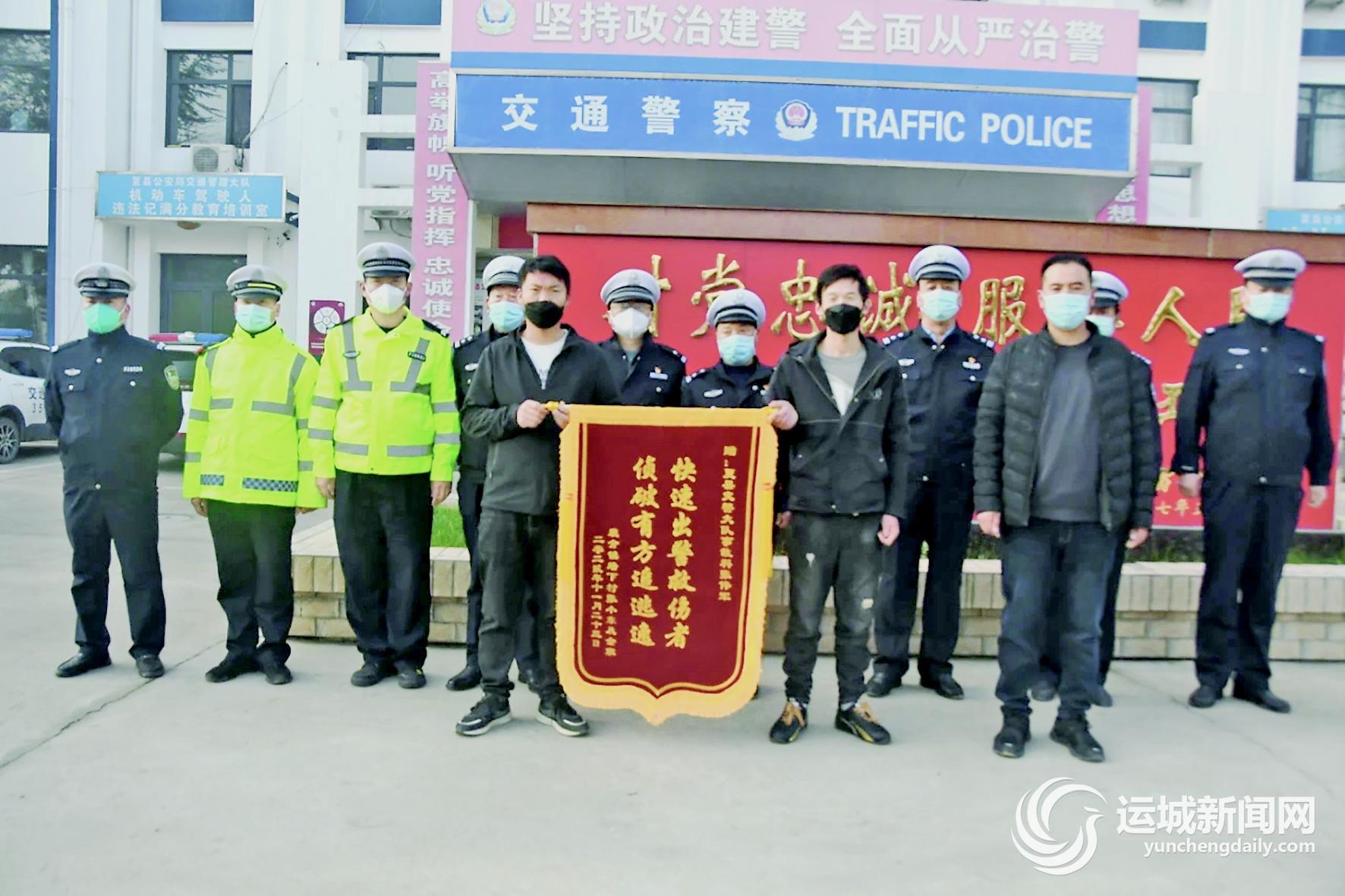 运城晚报讯(记者 刘凯华)11月23日,夏县裴介镇墙下村村民张某某将一面印有“快速出警救伤者 侦破有方追逃逸”的锦旗送到夏县交警大队,以表达对民警迅速破获逃逸事故的由衷谢意。