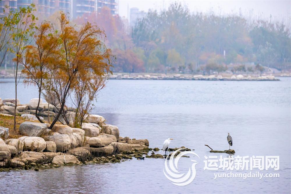11月28日,中心城区禹都公园色彩斑斓,风景如画,几只鹭鸟时而在空中飞舞盘旋,时而在水中觅食嬉戏,成为冬日一道自然生态美景。