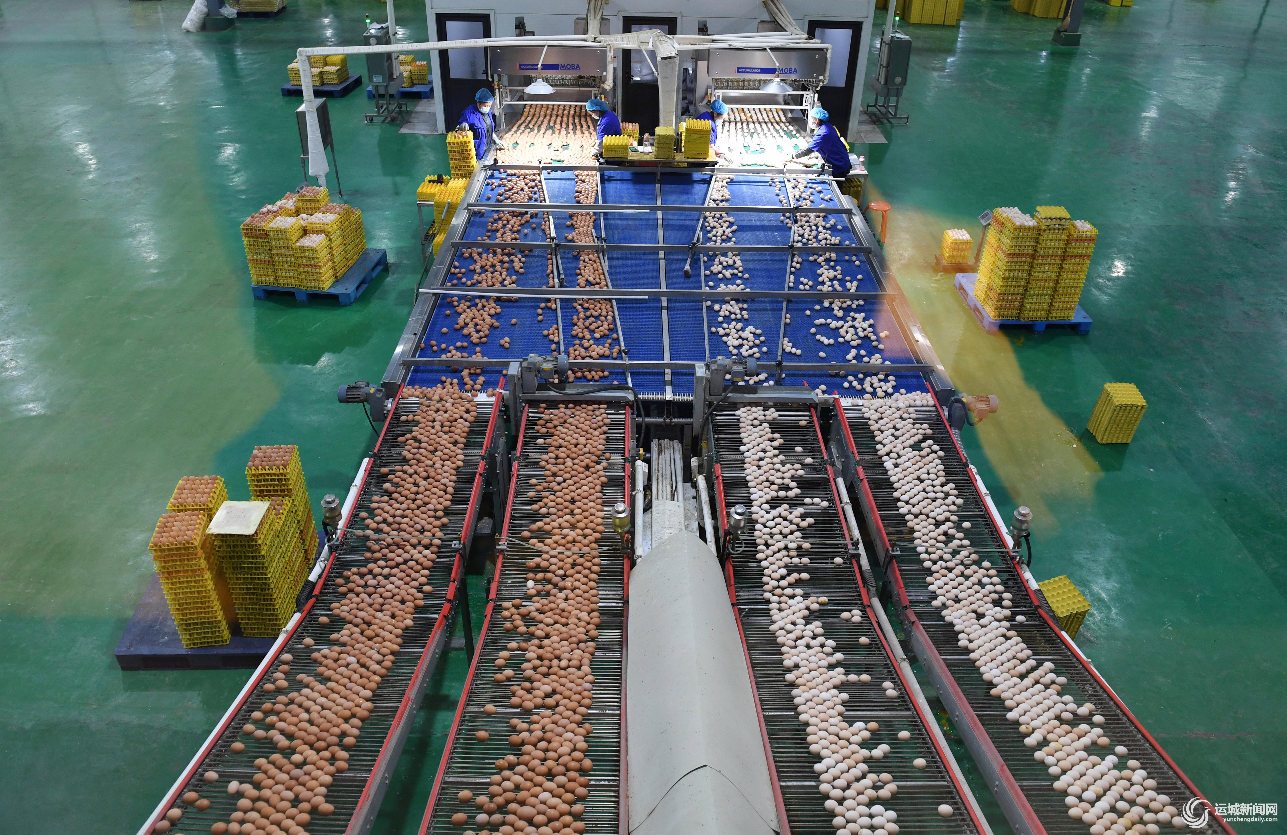 11月30日,稷山县山西晋龙集团佛峪口蛋鸡养殖基地,工人在现代化的生产线上分拣包装鸡蛋。
