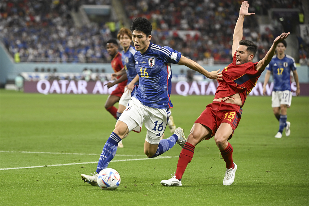 新华社多哈12月1日电(记者 岳冉冉 杨汀 王子江)1日,卡塔尔世界杯小组赛E组迎来最后一轮较量,日本队在3分钟内取得两粒进球,2:1逆转战胜西班牙队,两队携手晋级16强。