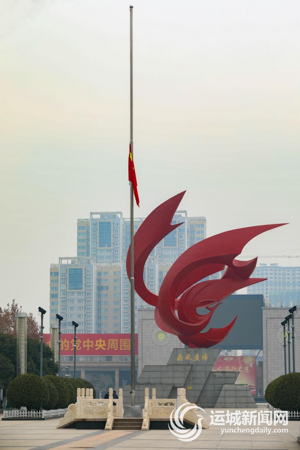 12月6日,江泽民同志追悼大会在北京人民大会堂隆重举行。我市中心城区南风广场下半旗志哀,全市各界干部群众肃立默哀。