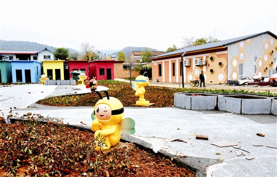 今年年初,官道口镇谋划建设蜜蜂小镇项目,项目落地就在南幽村,得到了干部群众的一致欢迎。目前,该项目一期建设基本完工,蜂产业数控物联网中心、蜂情亲子乐园、秘境花海研学基地等主要设施渐露雏形,附近的荒弃民居摇身一变,成了五颜六色的特色民宿,平坦开阔的广场上,憨态可掬的卡通蜜蜂散落在五彩步道两侧,徜徉其间,令人陶醉。