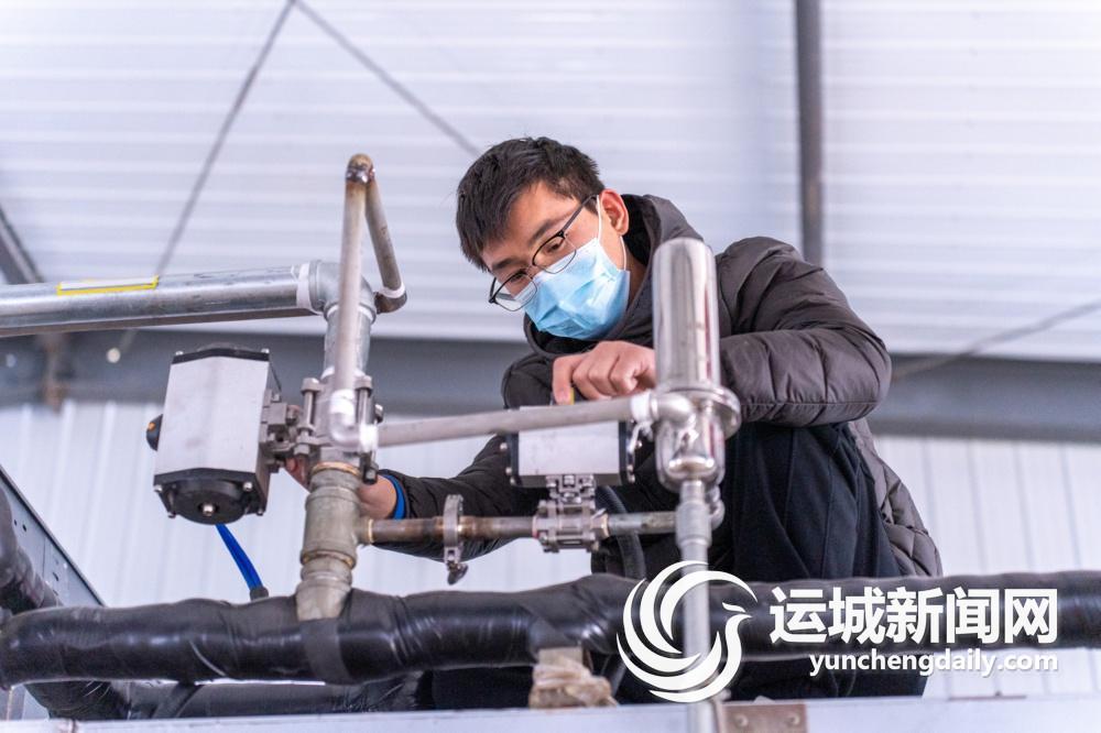 12月7日,盐湖高新区山西百特辉医疗科技有限公司新建年产4亿件医疗器械生产线项目现场,工人在调试设备。