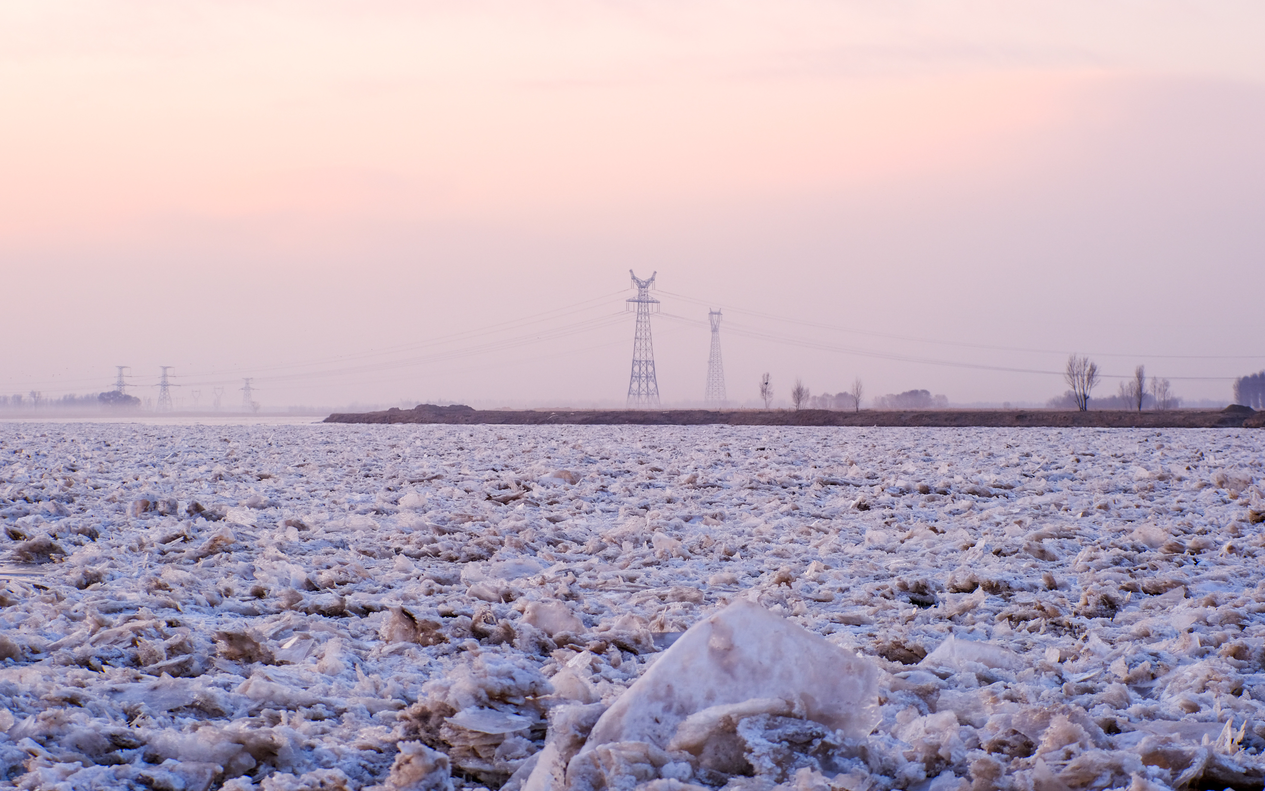 12月7日拍摄的内蒙古鄂尔多斯市达拉特旗冰封黄河景象。 近日,黄河内蒙古段进入凌汛期。 新华社记者 贾立君 摄