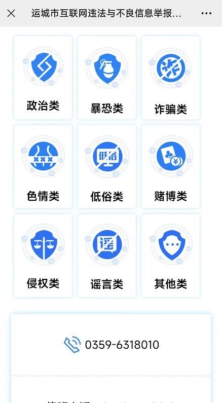 运城市互联网违法和不良信息举报平台主要受理运城市属地互联网违法和不良信息的举报,设有政治类、暴恐类、诈骗类、色情类、低俗类、赌博类、侵权类、谣言类及其他类共计9类违法和不良信息的举报入口,同时还搭建了网信动态、辟谣平台、互联网领域法律法规、网上问政等功能板块。网民在发现运城市属地内的互联网违法和不良信息之后,在举报平台提交相关信息,即可完成举报,运城市委网信办将及时对被举报对象进行核查并依法处置。此外,您也可关注“运城市网络举报”微信公众号进行举报。
