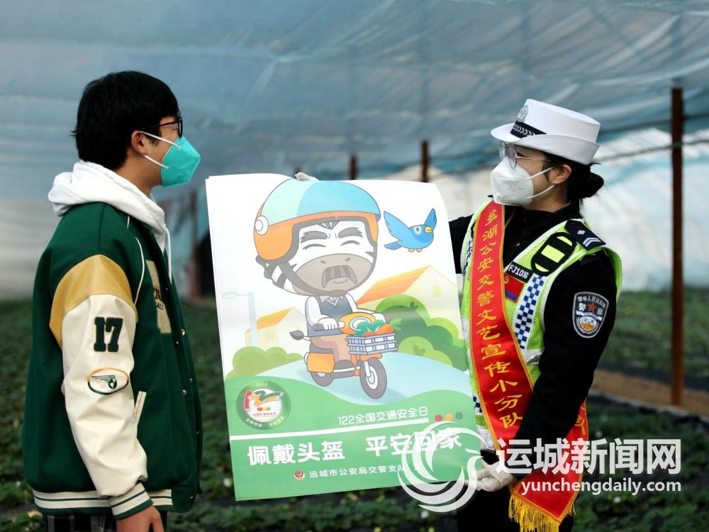 运城晚报讯(记者 寻霄 通讯员 葛崇收)12月9日,盐湖公安分局交警大队宣传科民警持续推进“美丽乡村行”和“122”主题宣传活动,走进辖区义同村富斯美草莓采摘园,给村民讲解冬季安全出行常识。