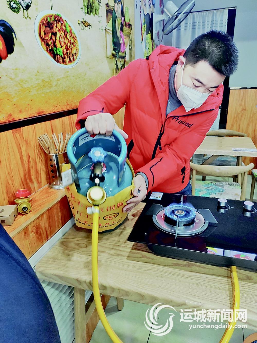 在市区红旗东街,检查组一行深入临街商户重点检查液化气和天然气非居民用户的“四项强制”改造安装工作是否到位,燃气设施旁是否堆放有影响安全的杂物。
