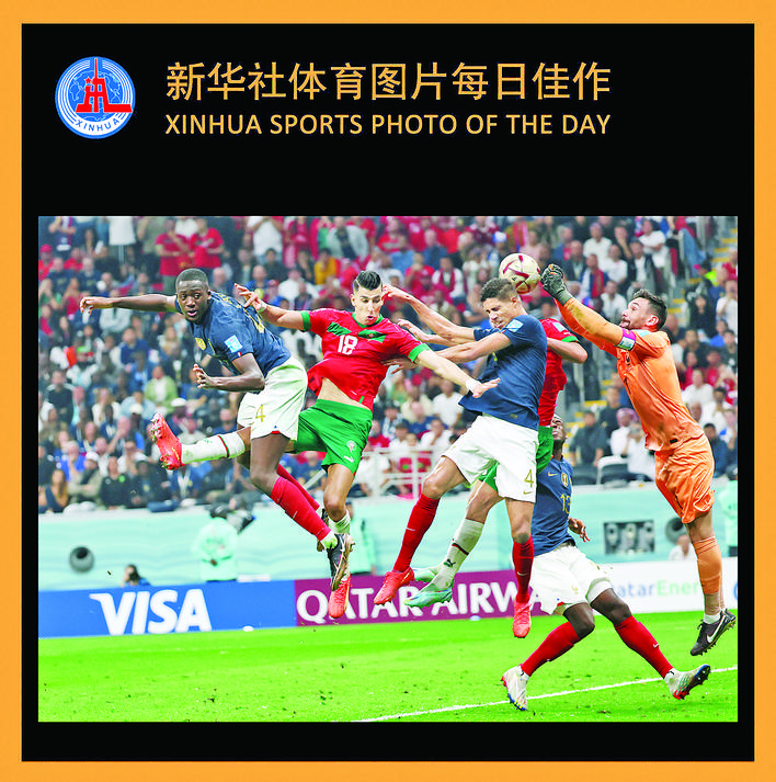 12月14日,法国队守门员洛里(右一)在比赛中扑救。 新华社记者 兰红光 摄