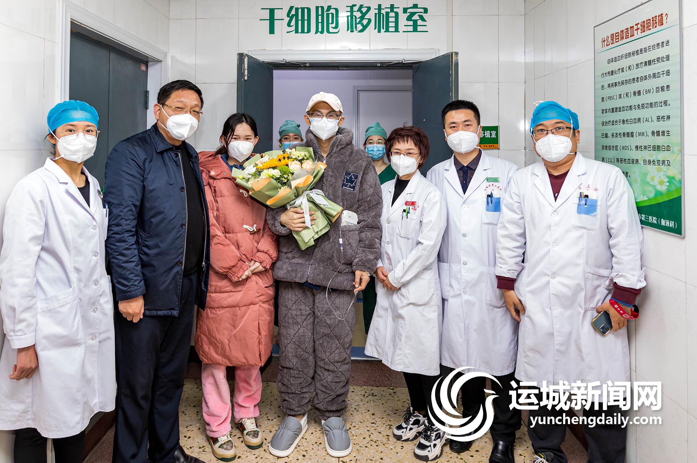 市第三医院血液一科主任、副主任医师彭英杰介绍,患者男性,盐湖区人,今年28岁,诊断为重型再生障碍性贫血,移植的是他妹妹的造血干细胞,采用的是同胞全相合异基因造血干细胞移植。