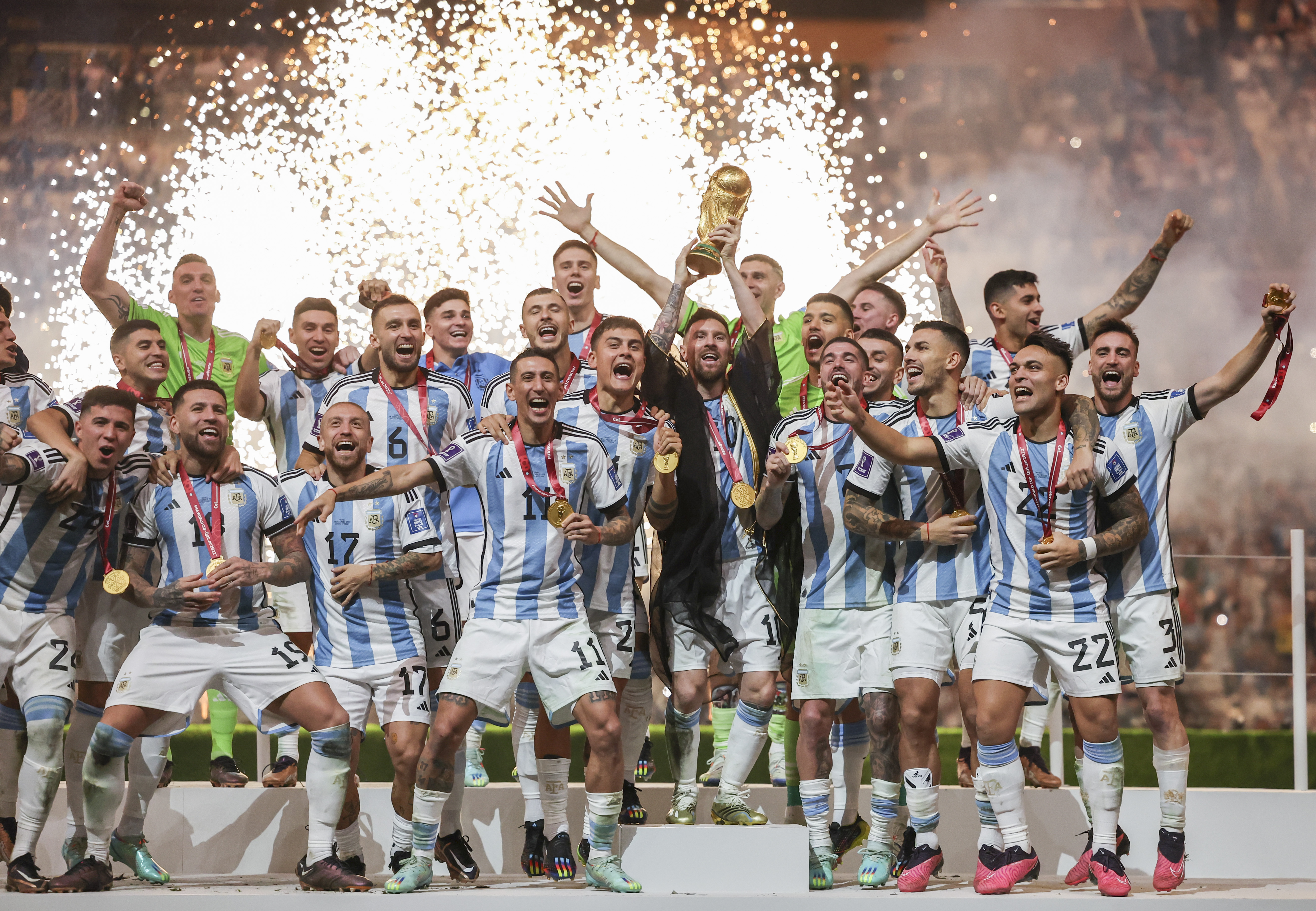 阿根廷队继1978年和1986年后再夺世界杯冠军,达成“三星”荣耀,夺冠次数仅次于“五星”巴西队、“四星”德国队和意大利队。