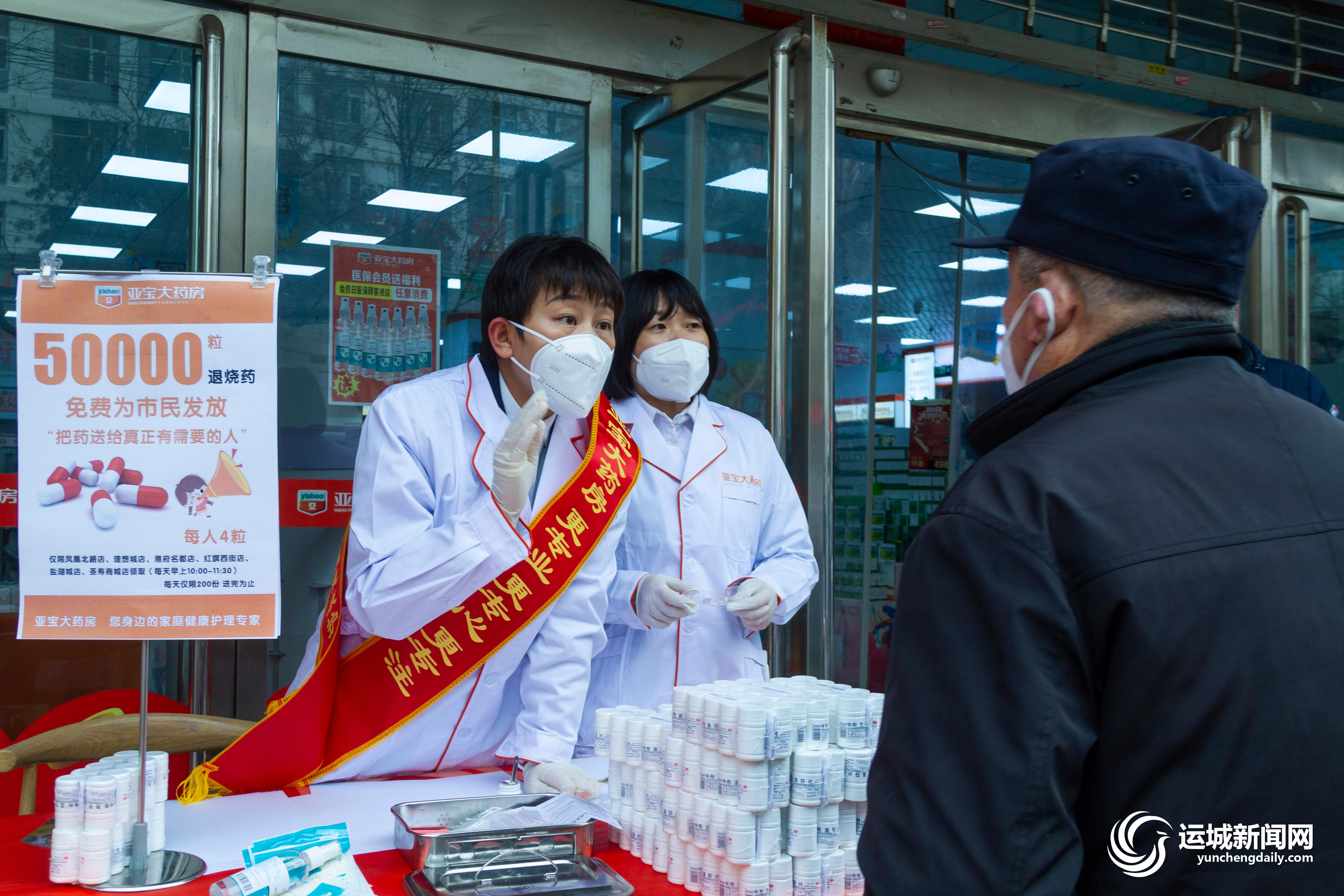 12月20日,盐湖区亚宝大药房工作人员向领药市民介绍服药注意事项。 随着新一轮新冠病毒感染人员的增多,亚宝药业集团调配了5万片退烧药布洛芬,投放到盐湖区的6个亚宝大药房,免费向群众发放。为不造成浪费,每人限领4片。发放活动截至12月27日,预计将惠及1.2万余人。特约摄影 姜桦