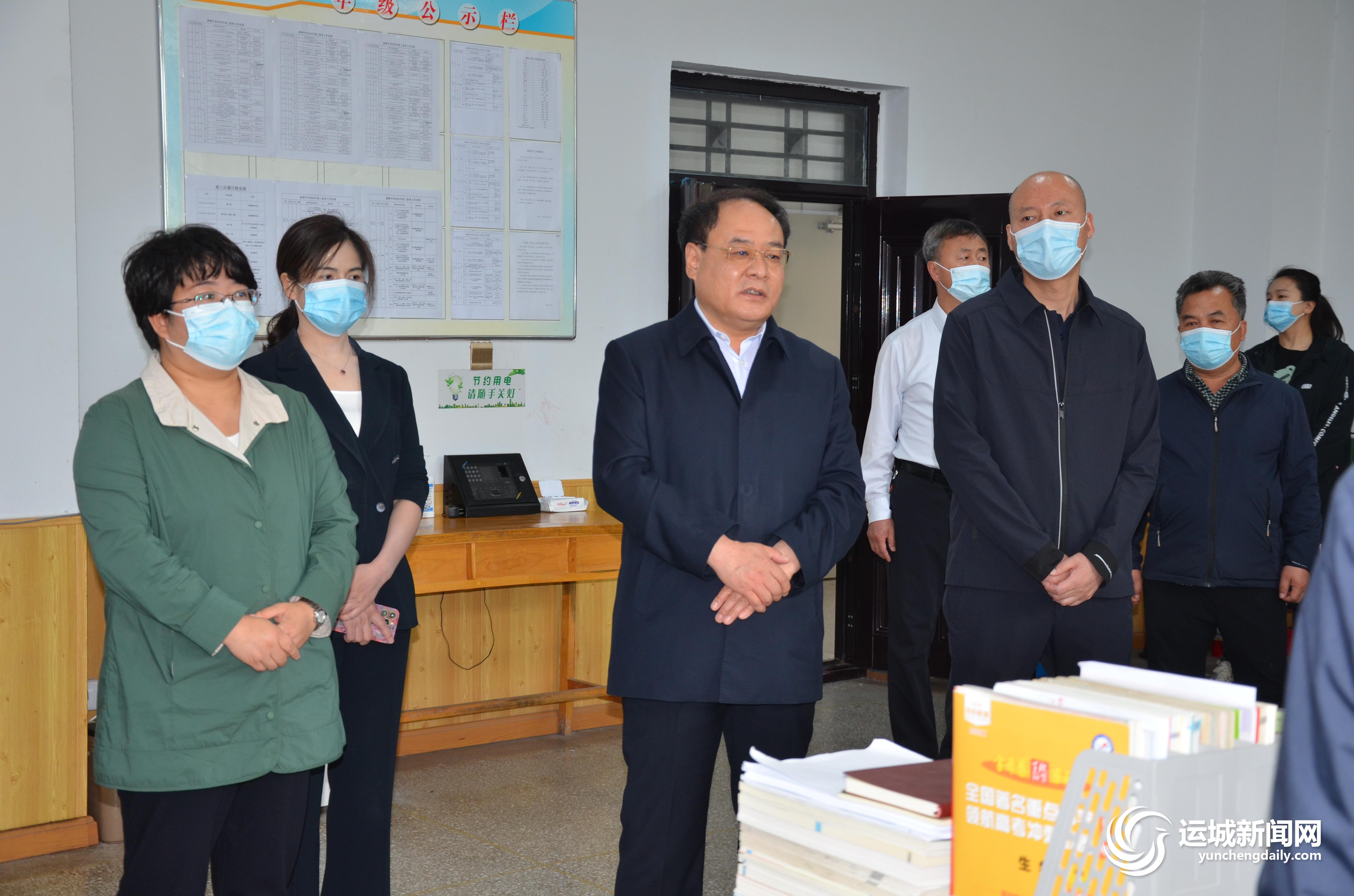 ▲新绛县委书记侯文亮,县委副书记、县长张琼,县委常委、副县长胡海艳慰问新绛中学教师。