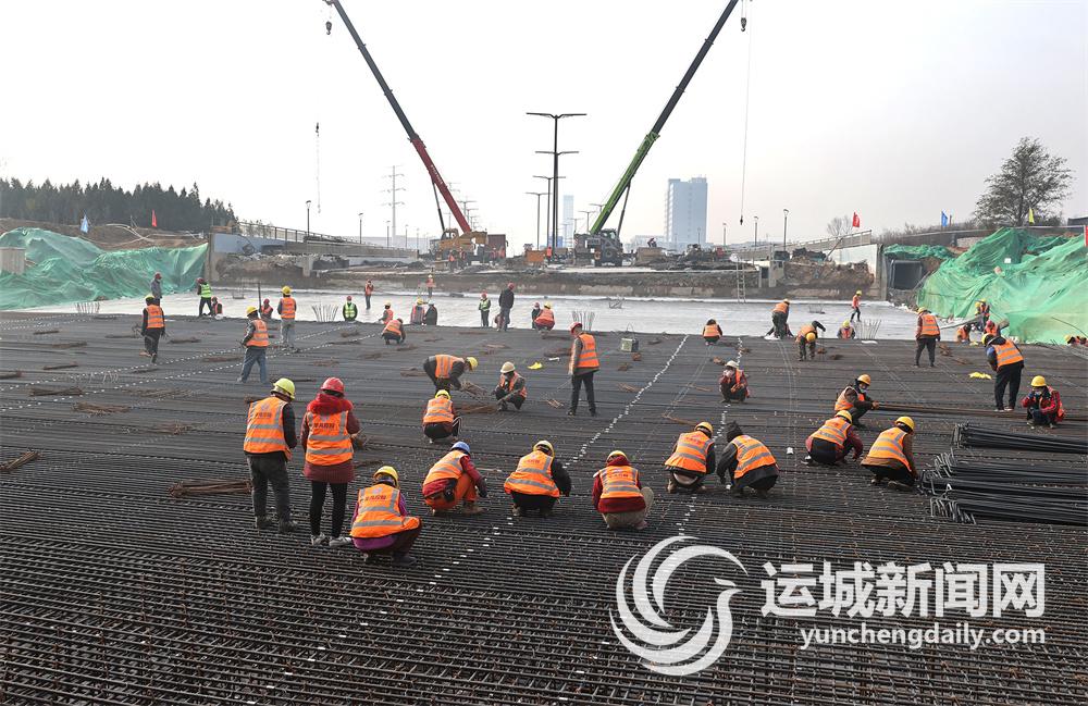 运城建工集团有限公司市政分公司员工加班加点,克服严寒加紧施工。
