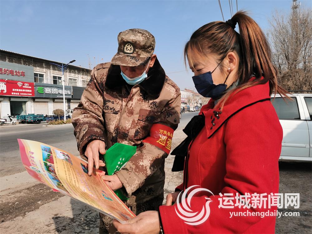 万荣县国有林场森林防火专业队员向群众散发宣传资料、增强群众防火意识、强化法纪观念。