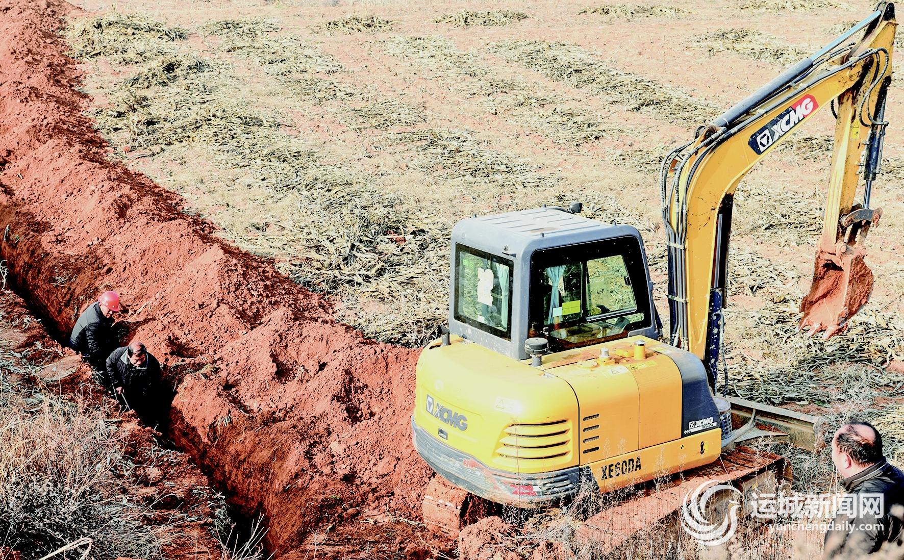 12月26日,垣曲县蒲掌乡高标准农田建设项目现场,施工队在开挖水利管道。 特约摄影 崔松良 摄