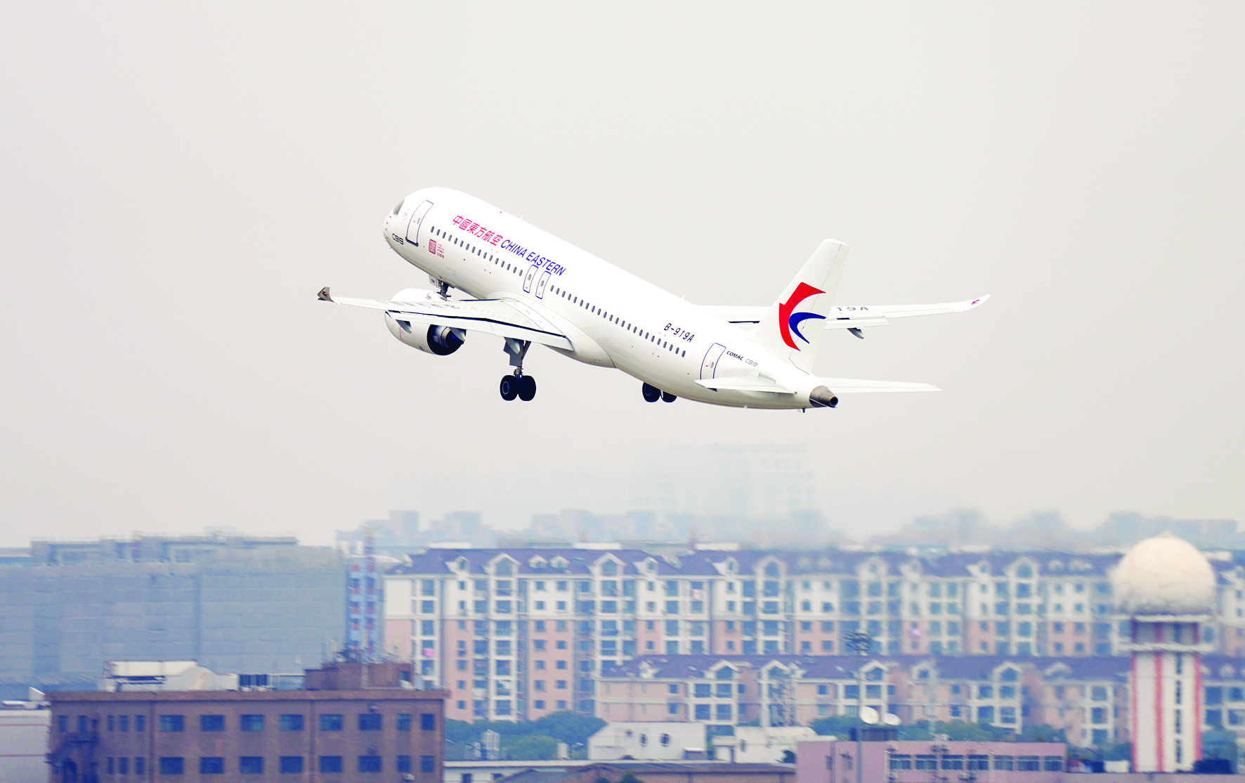 12月26日,国产大飞机C919在上海虹桥国际机场起飞。 当日,国产大飞机C919交付东航的全球首架机的首班验证飞行开启,从上海虹桥国际机场飞往北京首都国际机场。这标志着东航全球首架C919总计100小时的验证飞行拉开帷幕,将全面检验东航C919商业运行各项工作的可靠性,为后续顺利投入商业载客飞行奠定坚实基础。 新华社发