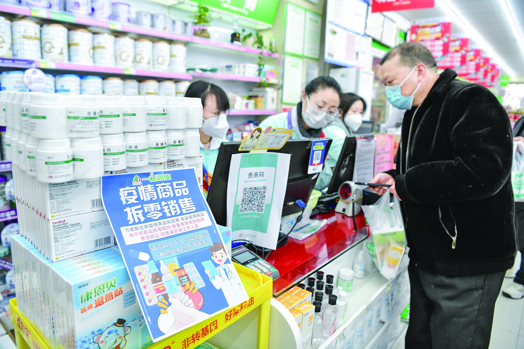12月24日,市民在贵阳市云岩区一家药店领取药品。 为解决广大民众难以购买到退烧药等药品的难题,在贵州省积极协调下,贵州一家药业公司从全国各地筹集药品340万粒,将自12月24日至12月30日通过线上下单、线下门店领取或线上配送的方式,免费发放给全省民众。 新华社记者 杨文斌 摄