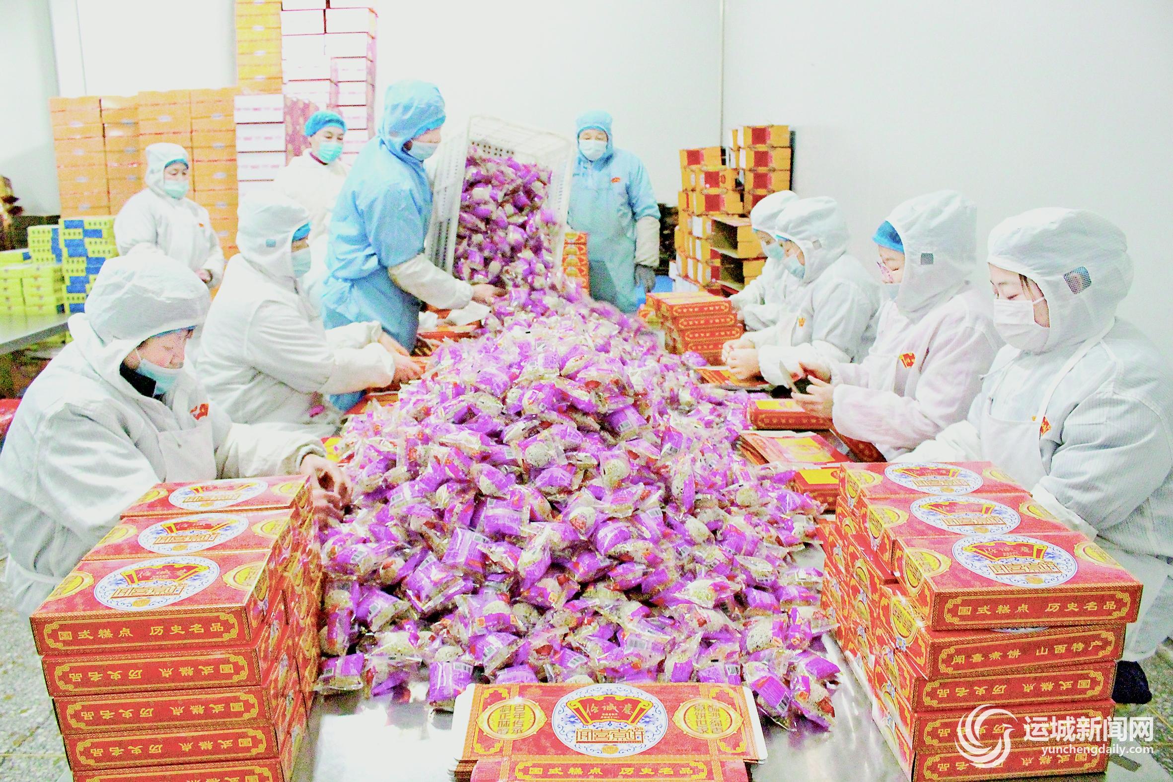 12月27日,在闻喜县任诚意煮饼食品开发有限公司包装车间里,员工们正在快速有序地分装产品,确保春节市场供应。 特约摄影 刘 佳 温旭旺 摄影报道