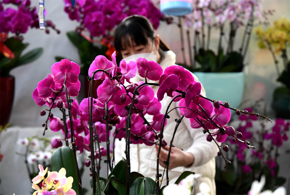 新年临近,各地的花卉基地和花卉市场繁忙起来,工作人员忙着管护、外运、销售花卉,供应节日市场。 新华社发