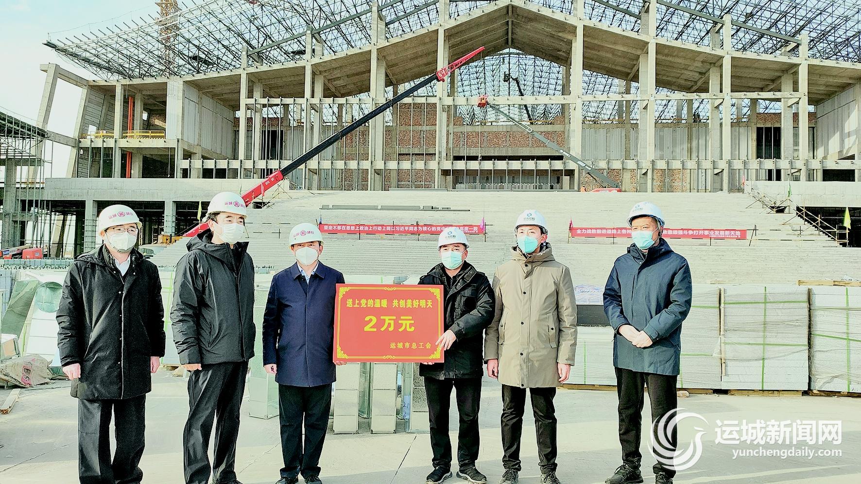 越是非常时期,越要真抓实干。优化落实疫情防控的“新十条”发布后,我市多措并举扎实推进复工复产,统筹疫情防控和经济社会发展,广大一线建设者坚守岗位,为全市经济发展作出了巨大贡献。为助力重大工程项目复工复产,关心关爱一线建设者,市总工会走进运城市会展中心项目(上图)、槐东北路项目、黄河金三角(运城)创新生态集聚区科创城项目、盐湖区半坡调蓄库项目、运城经开区华兆东南装配式钢结构配套部品部件生产区和绿色智能建造装备区项目等重大工程项目施工现场,慰问一线建设者。