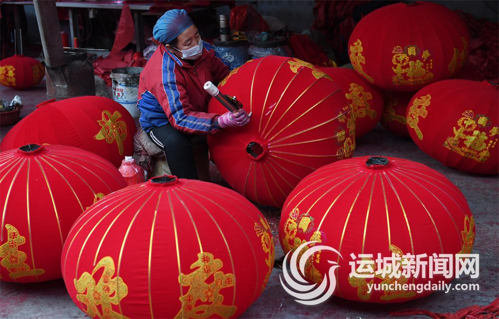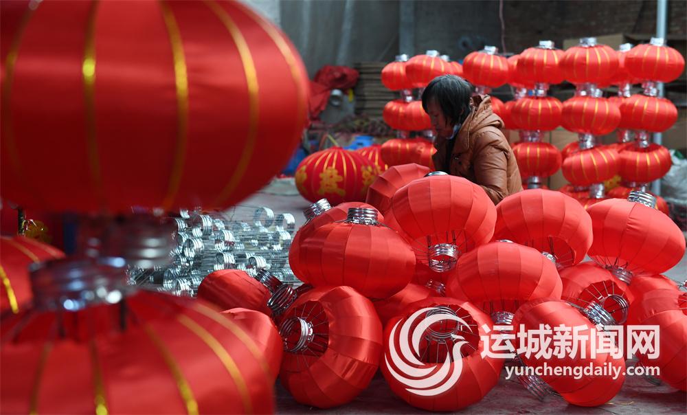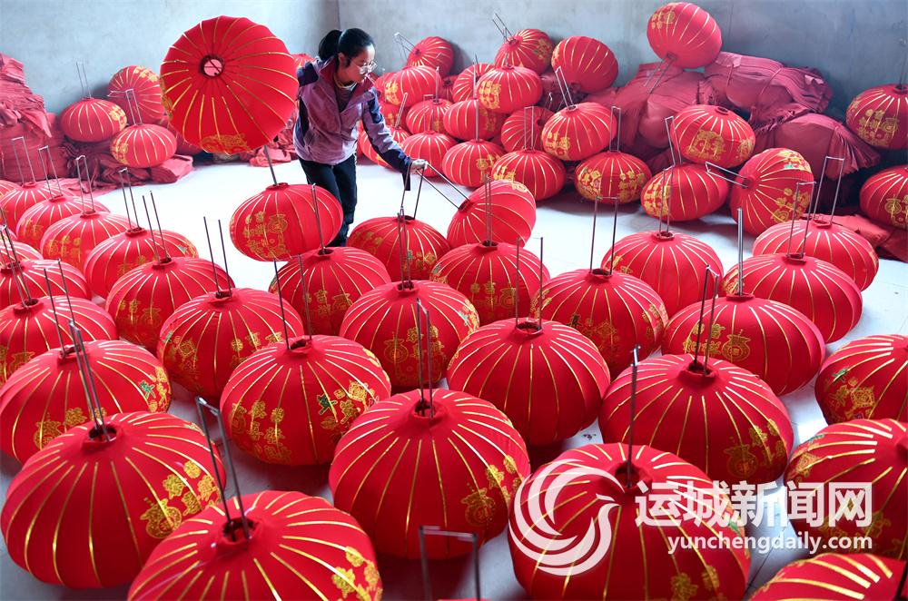 1月2日,稷山县稷峰镇杨赵灯笼产业园内,工人在加紧赶制大红灯笼。近年来,杨赵灯笼产业园灯笼加工企业在继承传统灯笼制作技艺的同时,创新灯笼设计,延伸产业链条,形成了灯笼加工全产业链。目前,该产业园每年有1000多人从事灯笼加工,年加工灯笼500多万对,产值超亿元。