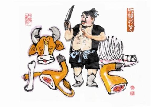 庖丁解牛的故事,妇孺皆知。其中有个题眼,即成语“目无全牛”。《庄子·养生主》载:“始臣(庖丁)之解牛之时,所见无非牛者;三年之后,未尝见全牛也。”庖丁解牛,执手操刀,游刃有余。其刀在牛的骨节筋络间穿行,挑断关节肯綮最薄弱之处,不一会儿,牛肉和牛骨就骨肉分离了。这个故事,给我们的启示有很多。