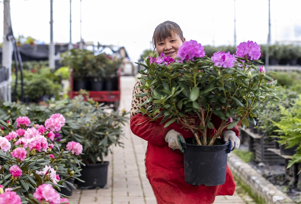 1月3日,村民在贵州省毕节市百里杜鹃管理区汇境花卉科技园管护花卉。新华社发(刘振清 摄)