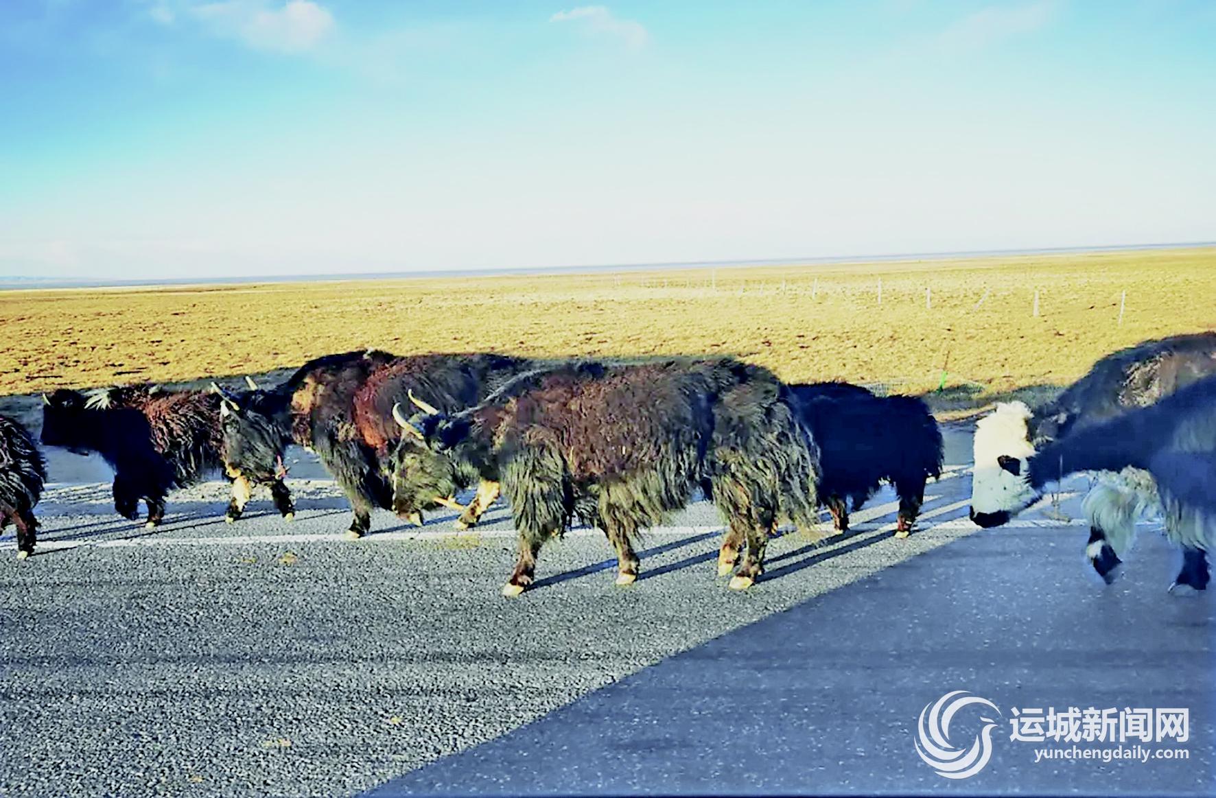 ▲在青海乌兰,偶有一群散养的牦牛慢悠悠穿过公路。